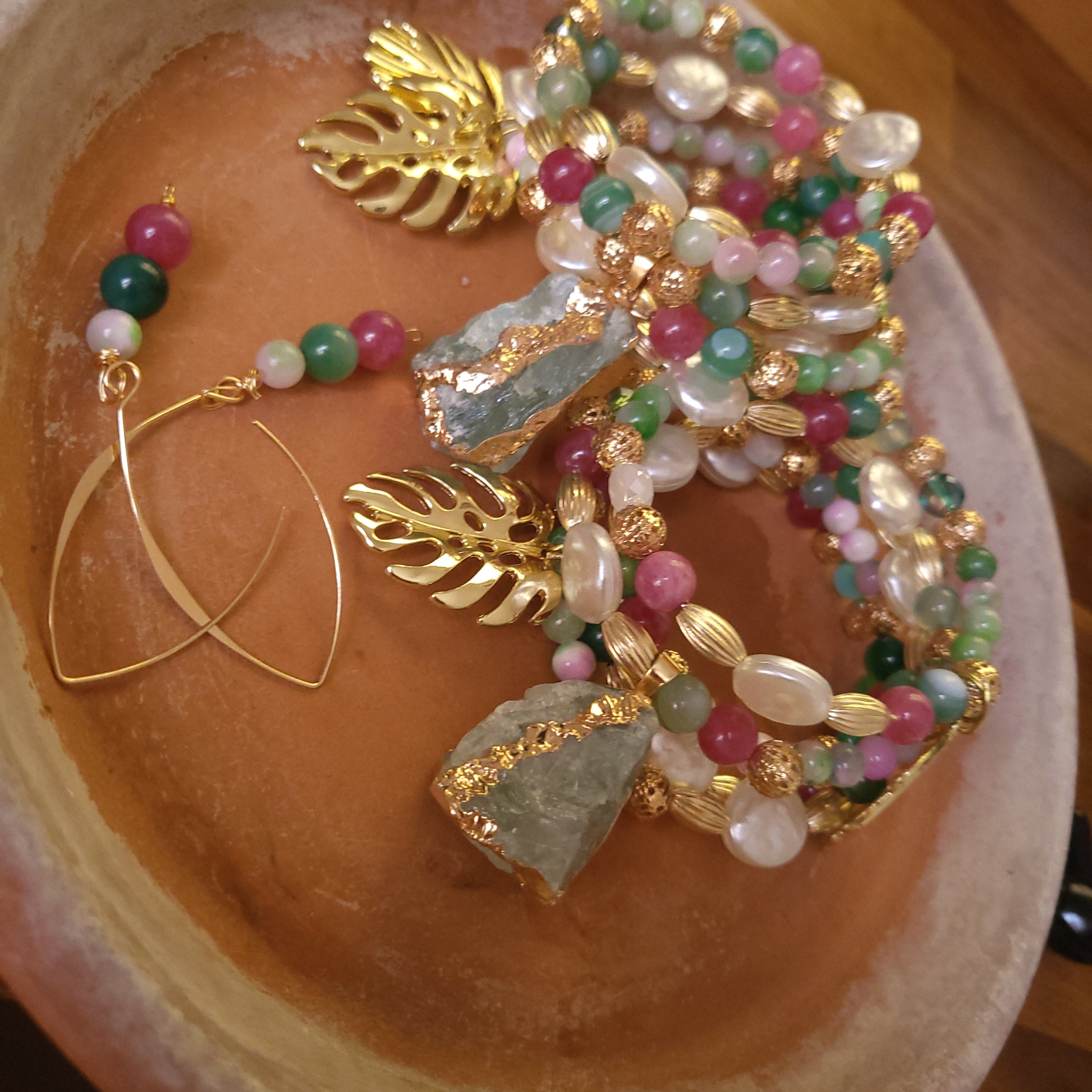 "Roses" est issue de quatre générations de femmes artistes dans le domaine de la musique et de la peinture qui m'ont inspirée dans la création de bijoux fantaisie, où je retranscris les couleurs dont elles m'ont fait héritage. Toutes ces femmes courageuses, pleines d'amour pour la vie et la famille, que je transmets aujourd'hui à ma fille... Quatre roses unies par le sang, l'amour et l'art.